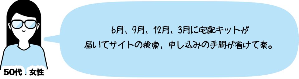 指定月に宅配キットが届くので、宅配キットが必要になる度に買取業者を調べる必要がなくなります。 -